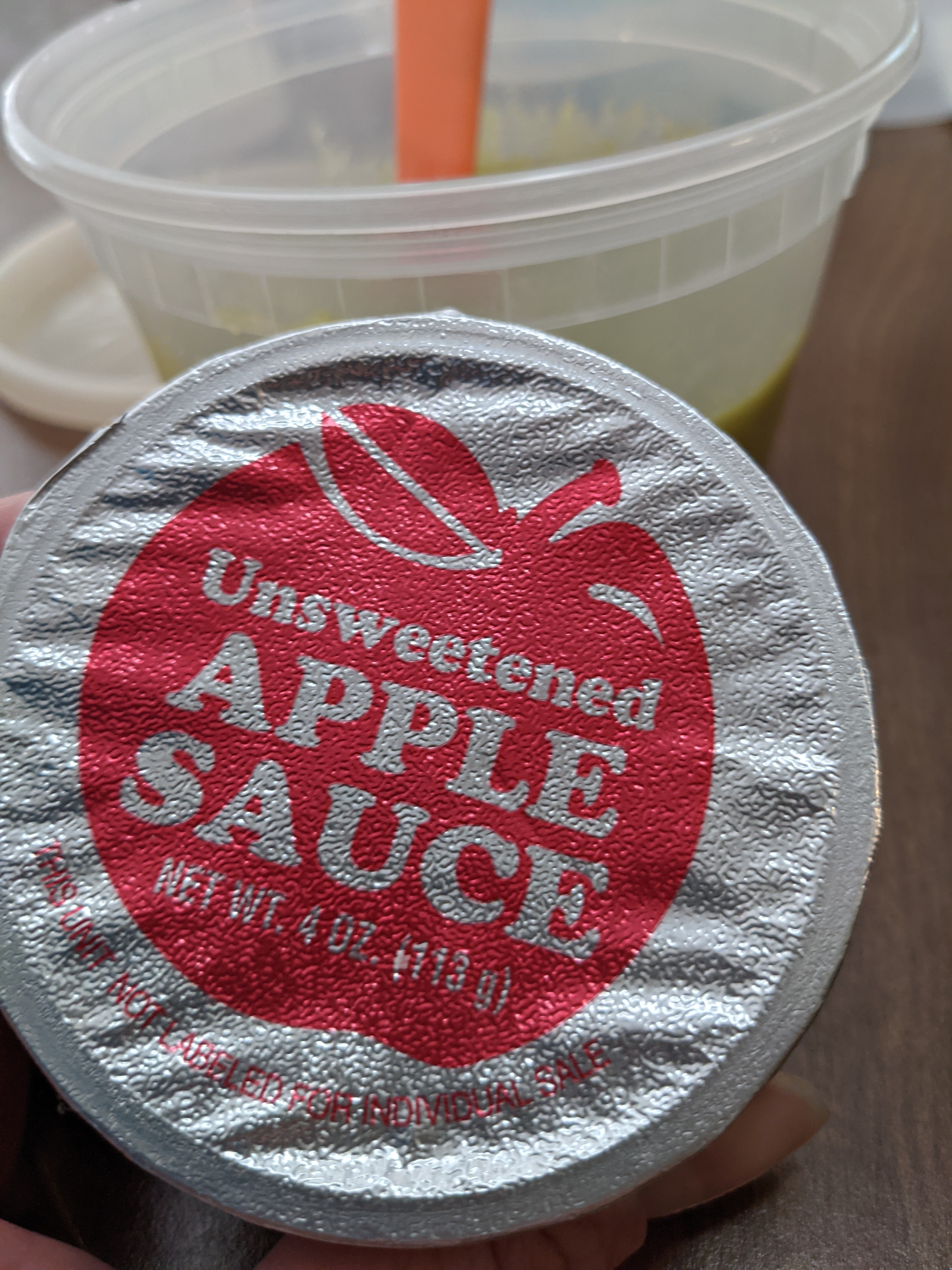 Package of unsweetened applesauce cups, if you’re running low or Baby really loves them