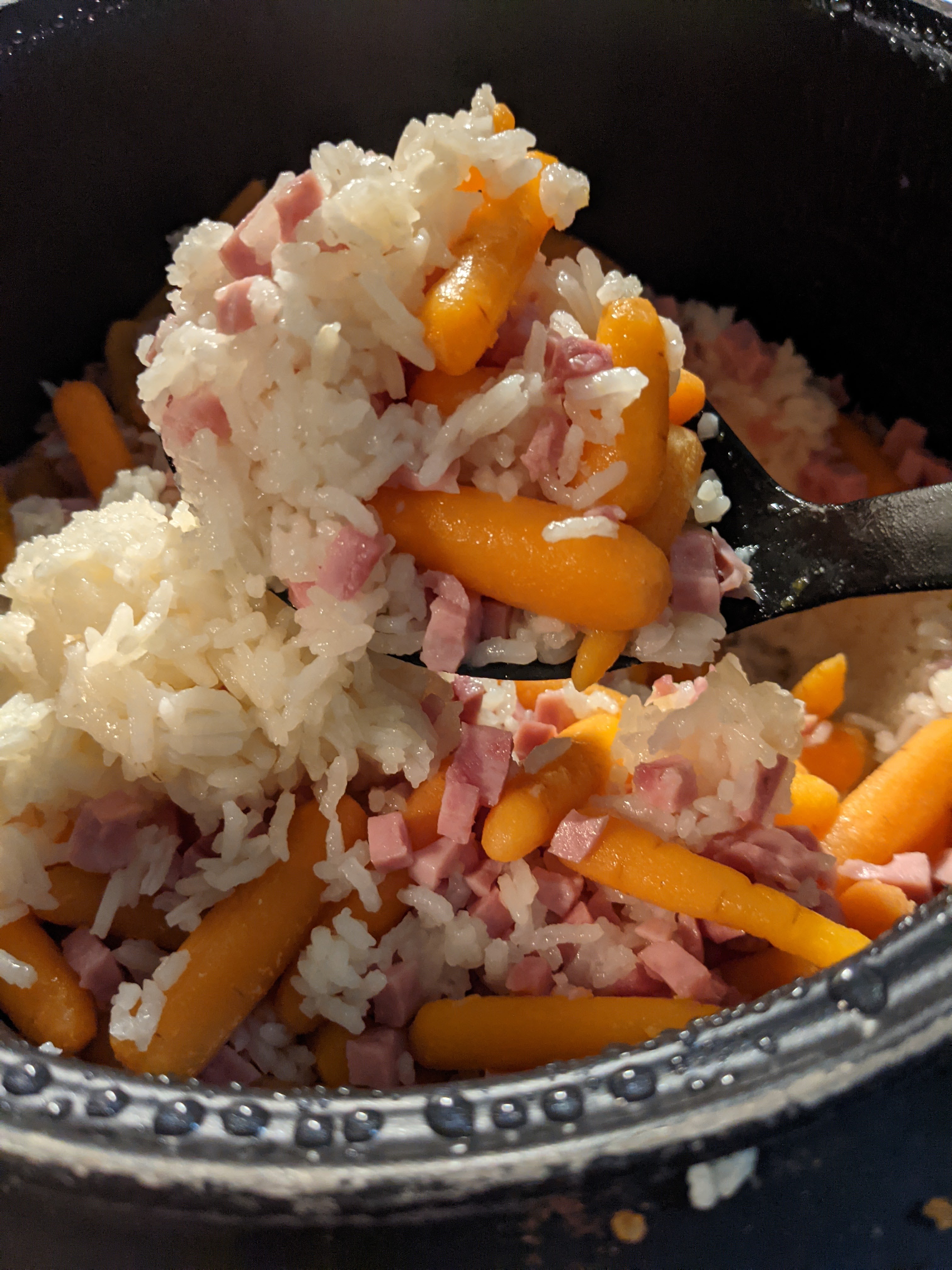 -once in the rice cooker, this takes about 45 minutes to cook