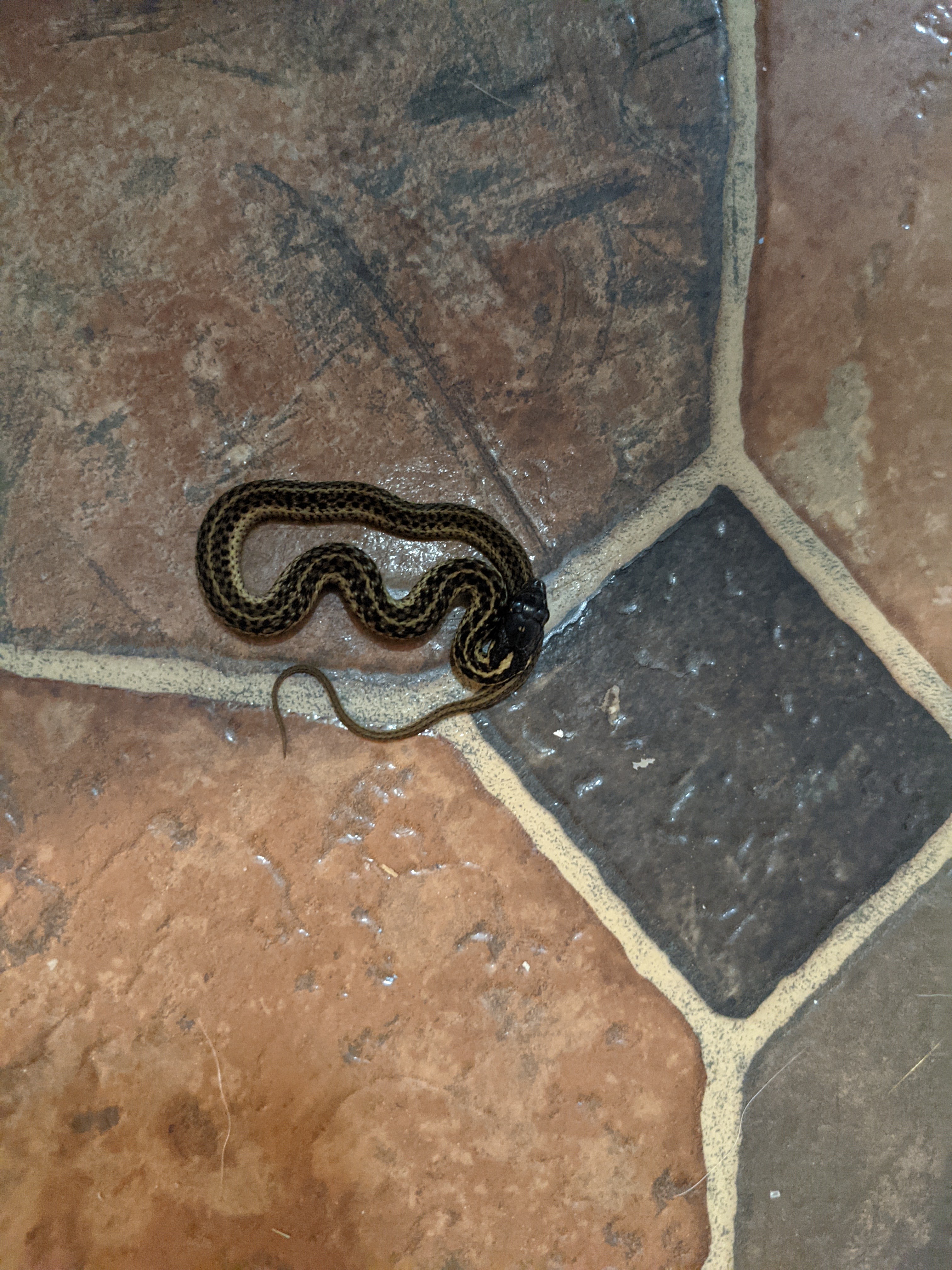 I’m pretty sure it was a baby rat snake. Sadly, I don’t speak parseltongue so I couldn’t ask it to find out.