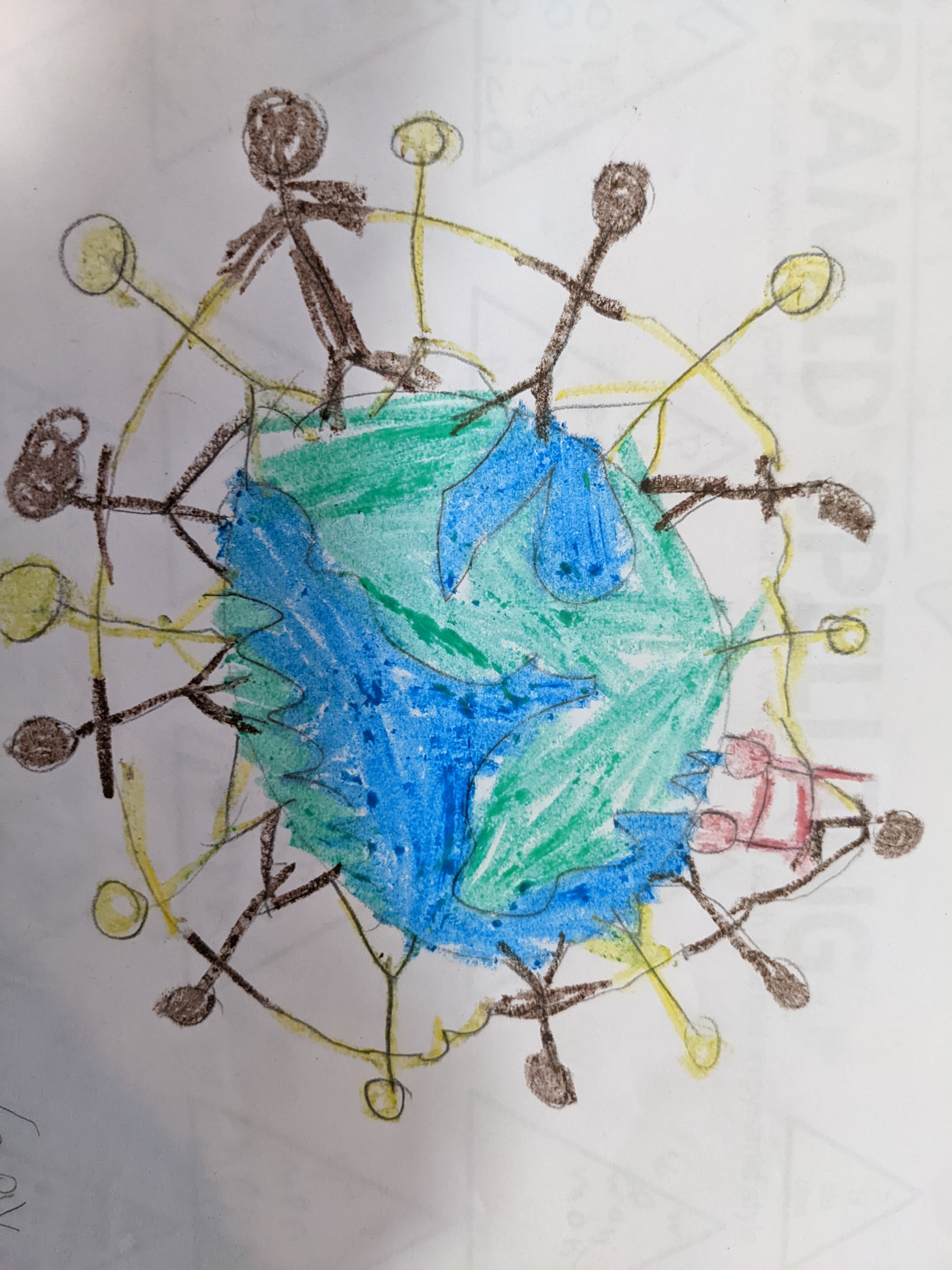 I found this artwork in my youngest’s folder yesterday, and it is the best of humanity that I’ve seen in days. I asked him what the art meant, what he was trying to say, and he told me that he wanted everyone to work together and to matter to each other. He said he wants us to be equal, no matter what we look like. This is idealistic and unbelievably important. It might be an unattainable goal but it is a goal worth striving for, fighting for, constantly working to reach. I love that he included a wheelchair in his drawing. In his mind, he sees people with disabilities as a part of his life, of his world. He sees them as belonging and needed and valuable. In his mind, in his vision, they are equal and he wants this for them. It never occurred to him that a drawing of people wouldn’t have someone with special needs in it.